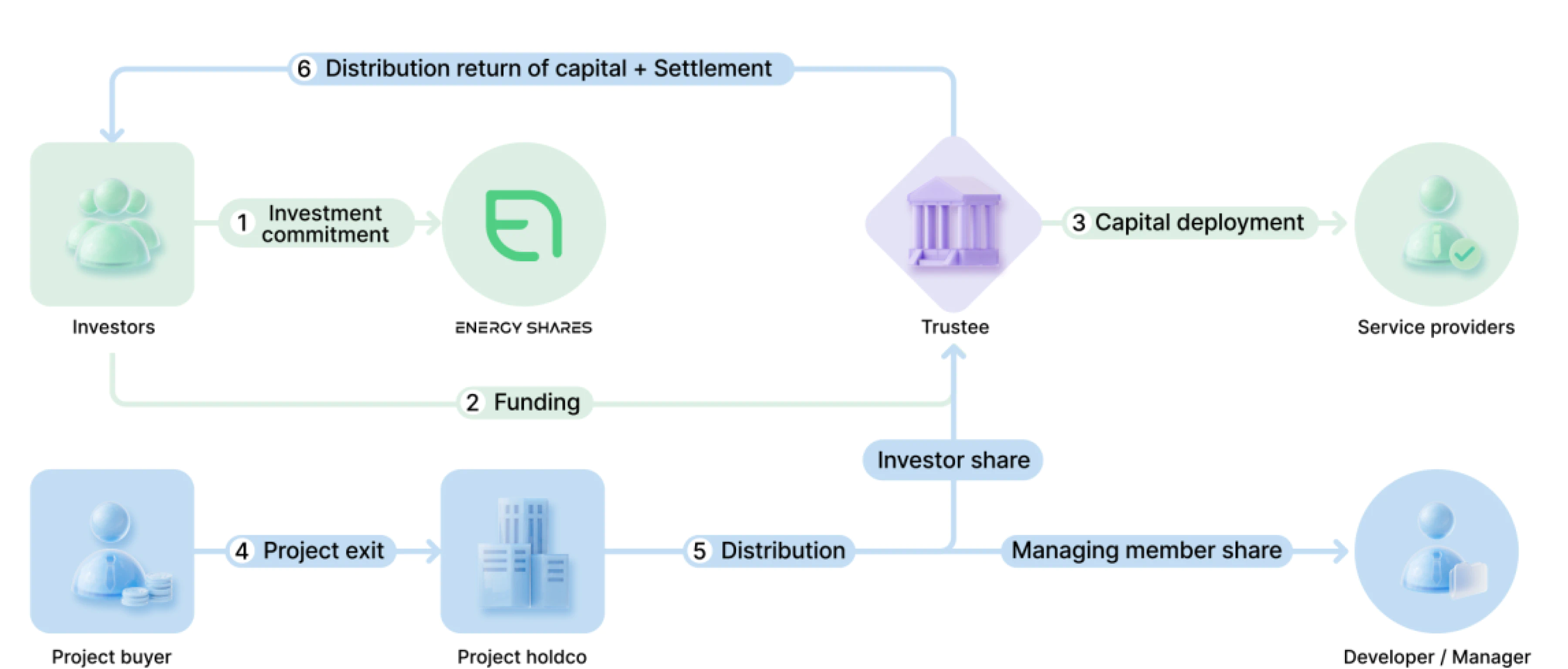 Investors make equity investments in a Project company through Energy Shares, a FINRA registered broker-dealer.